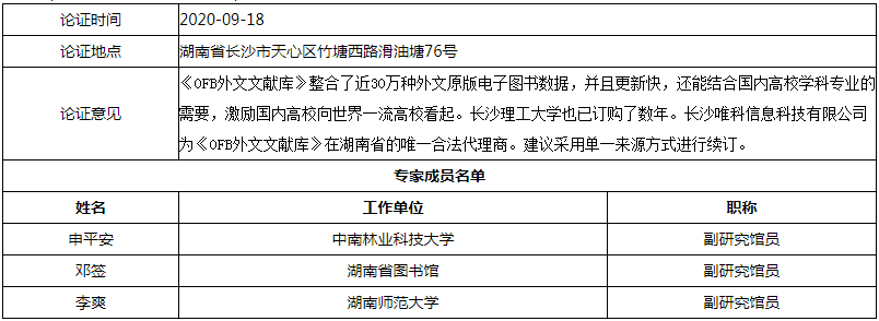 一、采购项目名称:长沙理工大学“OFB外文文献库”。 预算金额:¥ 100,000.00