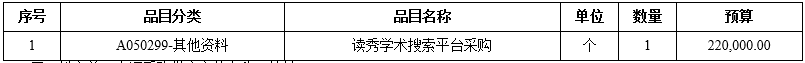 一、采购项目名称:湖南第一师范学院读秀学术搜索平台采购。 预算金额:¥ 220,000.00