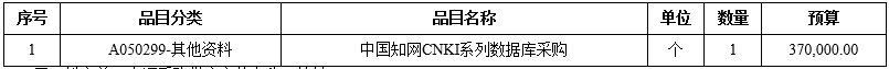 一、采购项目名称:湖南第一师范学院中国知网CNKI系列数据库采购。 预算金额:¥ 370,000.00