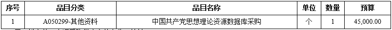 一、采购项目名称:湖南第一师范学院中国共产党思想理论资源数据库采购。 预算金额:¥ 45,000.00
