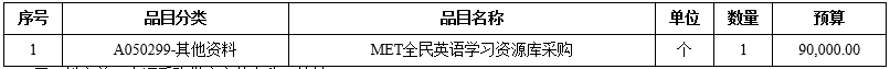 一、采购项目名称:湖南第一师范学院MET全民英语学习资源库采购。 预算金额:¥ 90,000.00