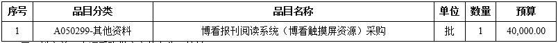 采购人的博看报刊阅读系统(博看触摸屏资源)采购拟进行单一来源采购,现将有关事项公告如下: