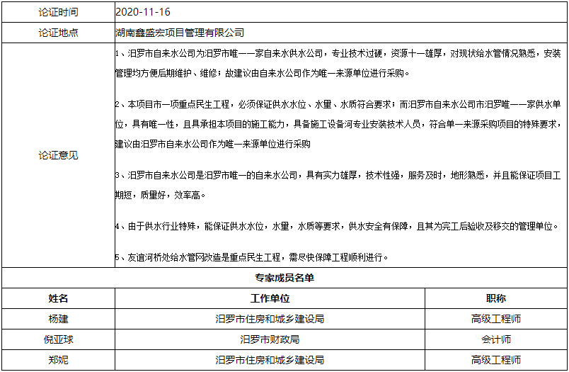 采购人的汨罗市建设路友谊河桥处给水管网改造工程拟进行单一来源采购,现将有关事项公告如下: