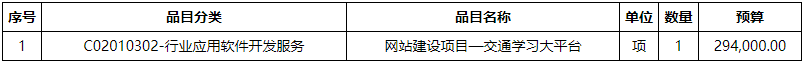 一、采购项目名称:湖南省交通运输厅科技信息中心网站建设经费—交通学习大平台。 预算金额:¥ 294,000.00