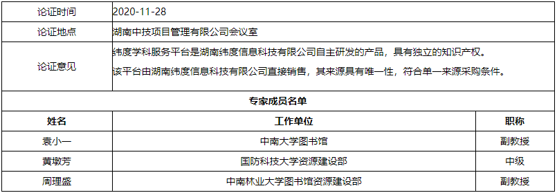 纬度学科服务平台为湖南纬度信息科技有限公司自主研发的产品,且是该产品的唯一提供商,目前该系统已经辐射全国众多985、211等高校,产品得到业内一致好评。故本项目申请采用单一来源的采购方式。。