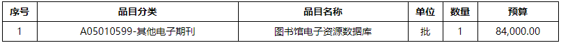 一、采购项目名称:湖南农业大学JCR数据库。 预算金额:¥ 84,000.00