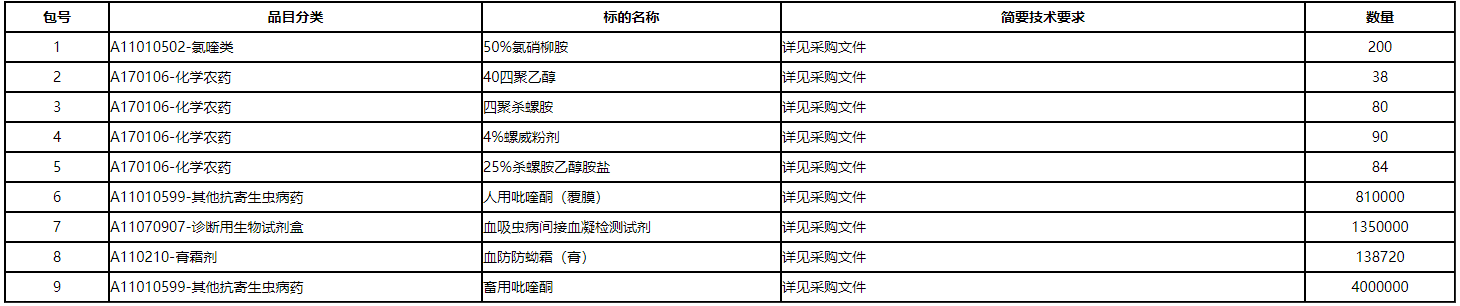 采购项目名称:2021年中央补助血吸虫病防治药品项目