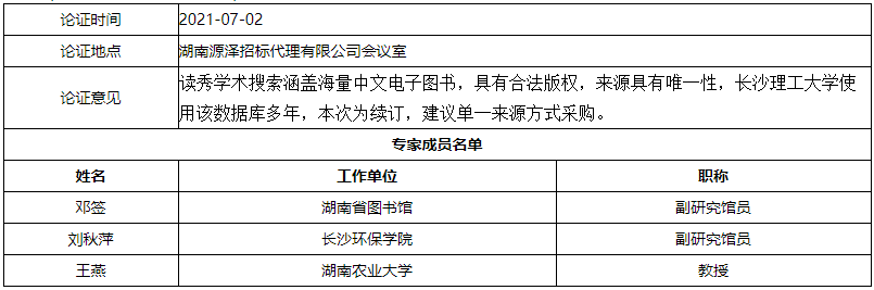 读秀学术搜索是国内唯一一家做了千家图书馆的纸本馆藏挂接的、可以让本馆的馆藏融入全国联合资源系统中的数据库,同时可对本馆主题馆藏结构进行分析。读秀学术搜索由北京世纪超星信息技术发展有限责任公司生产与提供服务,湖南世纪超星信息技术有限公司是北京世纪超星信息技术发展有限责任公司在湖南省唯一的授权供应商,来源具有唯一性。本次为资源续订,申请单一来源方式采购。。