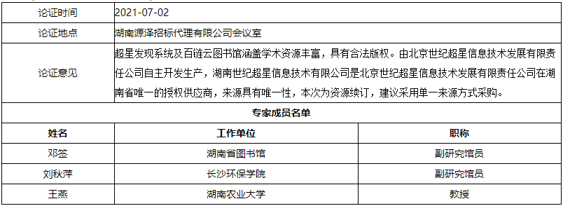 超星发现系统是在资源文献类型方面覆盖非常全面的检索系统,百链云图书馆为多家图书馆搭建文献传递平台,提供多级调度系统,实现了对不少于500个中外文数据库的文献传递服务。超星发现系统及百链云图书馆由北京世纪超星信息技术发展有限责任公司生产与提供服务,湖南世纪超星信息技术有限公司是北京世纪超星信息技术发展有限责任公司在湖南省唯一的授权供应商,来源具有唯一性。本次为资源续订,为保障资源建设的延续性,申请单一来源方式采购。。