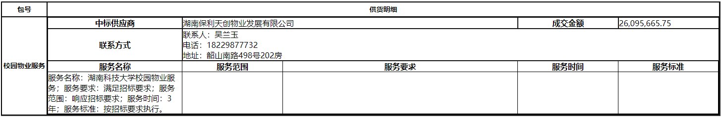 湖南科技大学的湖南科技大学校园物业服务 公开招标 采购项目于2021年07月13日结束,现将中标(成交)结果公告如下: