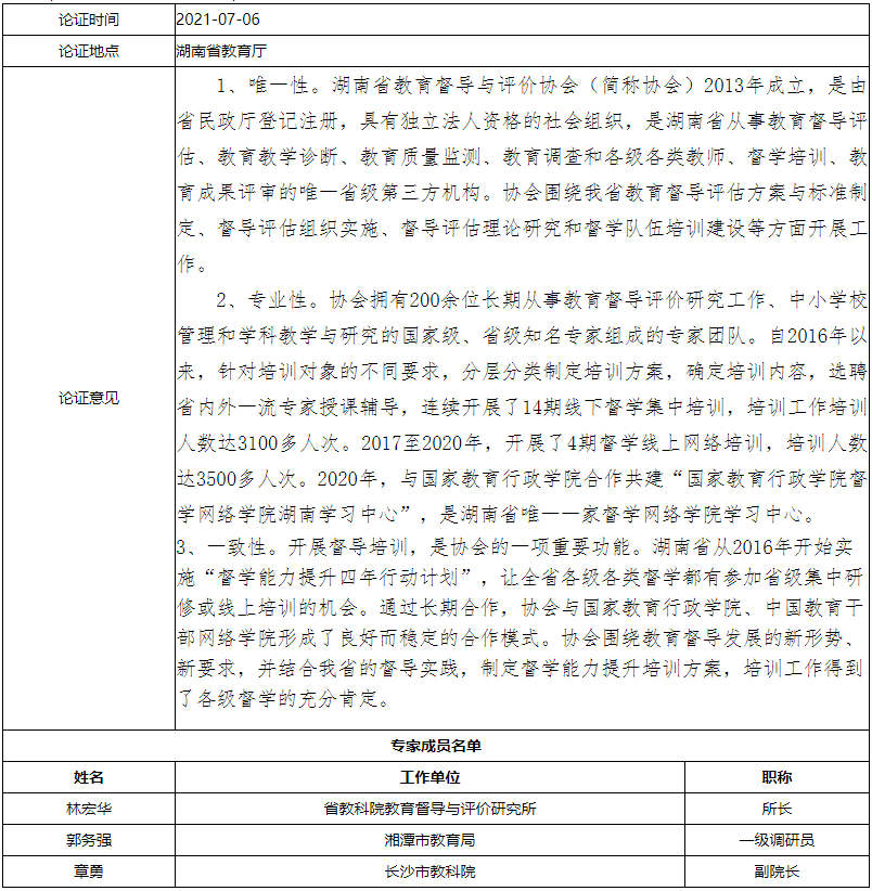 1.名称:湖南省教育督导与评价协会