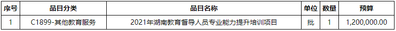 一、采购项目名称:湖南省教育厅2021年湖南督导人员专业能力提升培训。 预算金额:¥ 1,200,000.00
