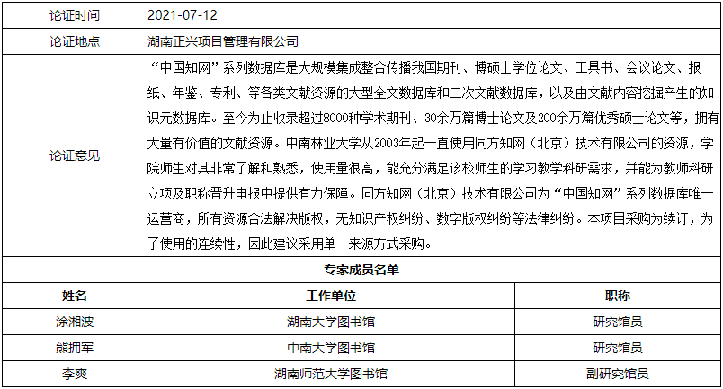 中南林业科技大学2021年中国知网资源总库单一来源采购公示
