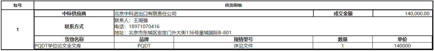 长沙理工大学的长沙理工大学PQDT学位论文全文库项目单一来源采购项目于2021年09月26日结束,现将中标(成交)结果公告如下: