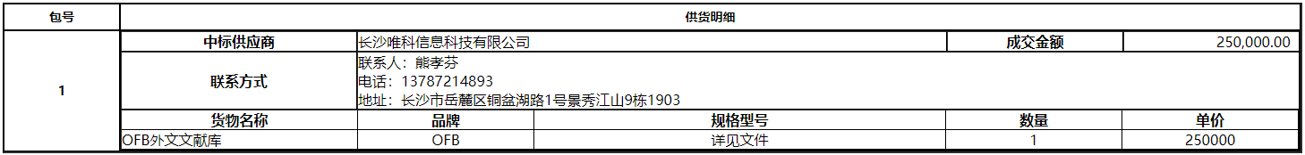 长沙理工大学的长沙理工大学OFB外文文献库项目单一来源采购项目于2021年09月26日结束,现将中标(成交)结果公告如下: