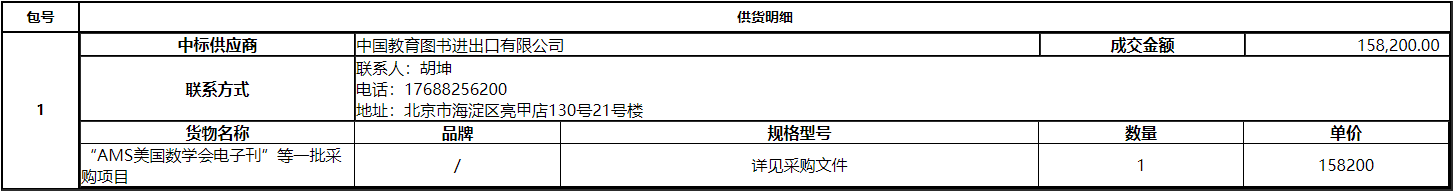 湖南师范大学的湖南师范大学“AMS美国数学会电子刊”等一批采购项目 单一来源采购项目于2021年11月11日结束,现将中标(成交)结果公告如下: