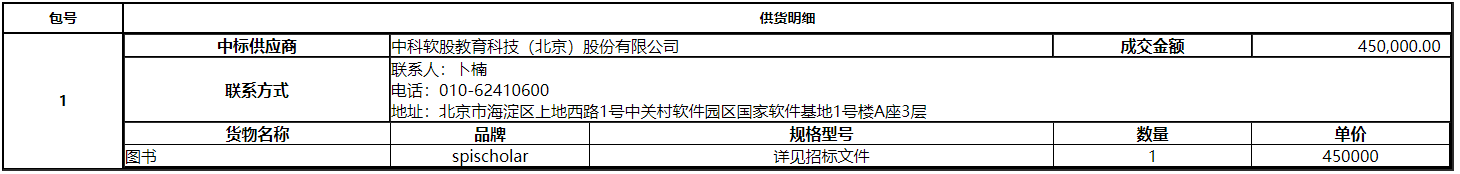 湖南师范大学的湖南省高校数字图书馆2021年度“中科UMajor大学生专业单一来源采购项目于2021年11月19日结束,现将中标(成交)结果公告如下: