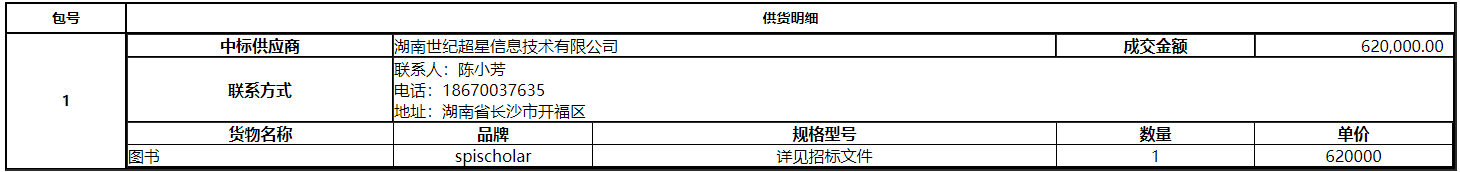 湖南师范大学的湖南省高校数字图书馆2021年度“湖南省高校数字资源共享平台单一来源采购项目于2021年11月19日结束,现将中标(成交)结果公告如下: