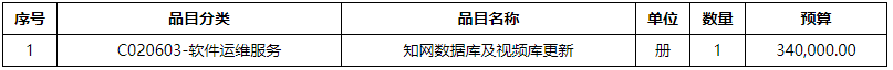 一、采购项目名称:湖南城建职业技术学院知网数据库及视频库更新。 预算金额:¥ 340,000.00