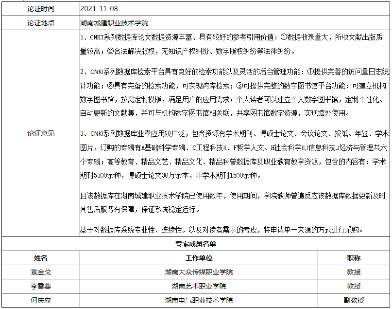 该数据库在湖南城建职业技术学院已使用数年,使用期间,学院教师普遍反应该数据库数据更新及时其售后服务有保障,保证系统稳定运行。基于对数据库系统专业性、连续性,以及对读者需求的考虑,特申请单一来源的方式进行采购。。