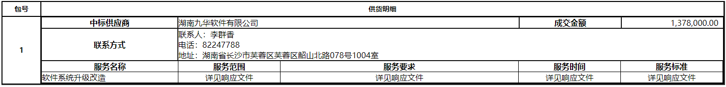 湖南省地质院的湖南省地质院机关财务内部控制信息化建设项目单一来源采购项目于2021年12月03日结束,现将中标(成交)结果公告如下: